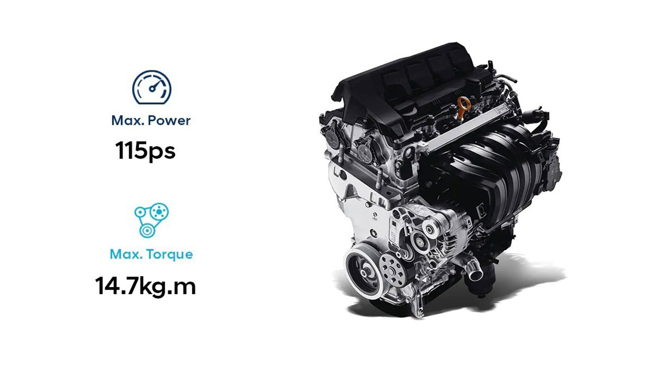Công suất cực đại đạt 115ps tại 6,300 vòng/phút Momen xoắn cực đại đat 144Nm tại 4,500 vòng/phút.